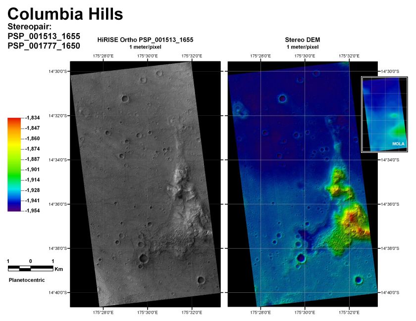Next Image DEM images of Columbia Hills on Mars (USGS/HiRISE) DEM images of Columbia Hills on Mars (USGS/HiRISE)