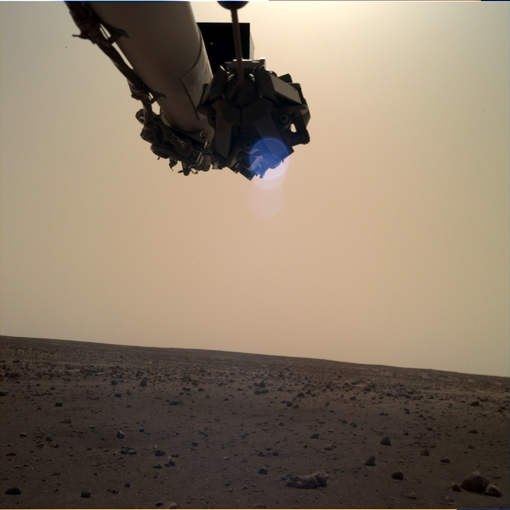 The view from InSight’s Instrument Deployment Camera (IDC) that is attached to its robotic arm [NASA/JPL-Caltech]