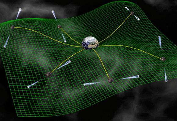 Gravitational waves are a theoretical consequence of a propagating energy disturbance through space-time. They are predicted by Einstein’s general relativity equations, and astrophysicists are going to great pains to try to detect the faint signature from the passage of these waves through local space. Unfortunately, even though millions of dollars have been spent on international experiments, the gravitational wave remains in equation form; there is little (direct) evidence to support their existence.