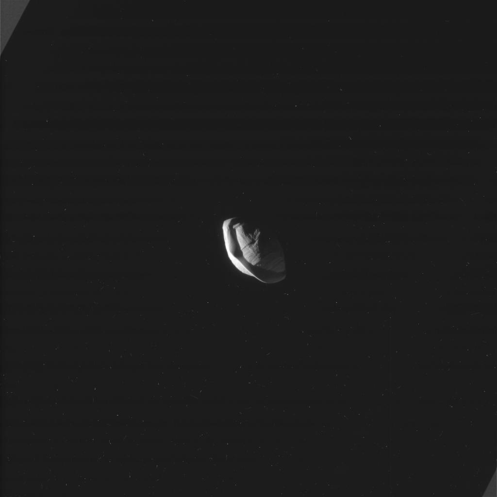 This is Pan, a 22 mile-wide moon that scoots through Saturn’s rings, orbiting the gas giant once every 13.8 hours. And it’s weird.