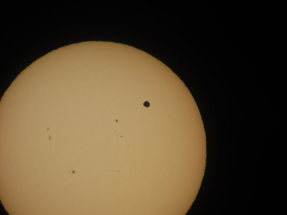 About those blotches: those dark spots are sunspots and they are a direct consequence of the magnetic turmoil that rumbles inside the Sun during solar maximum. Remember those coronal loops I was talking about? Well, these huge, beautiful arcs of plasma cause the hotter outer layers of the Sun to be pushed aside, exposing the comparatively cooler (though still thousands of degrees) plasma under the surface — that’s what creates those dark blotches. And by counting sunspots, you can gauge how magnetically active the Sun is.